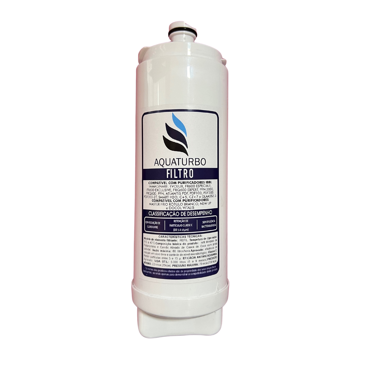 O elemento filtrante possui garantia somente contra defeitos de fabricação por um período de 03 meses (90 dias), podendo saturar antes do previsto para vida útil devido às condições da água onde será instalado.